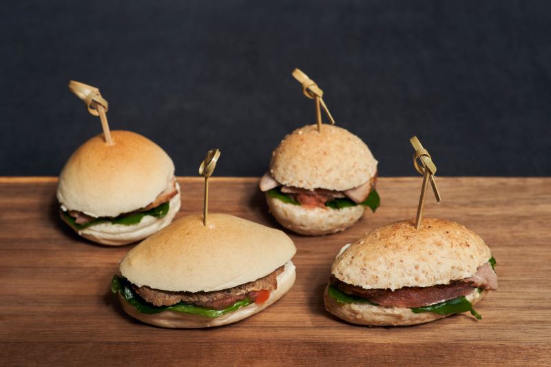 Tapadito cocktail; roast beef, tomate, rúcula, mayonesa, pan blanco.